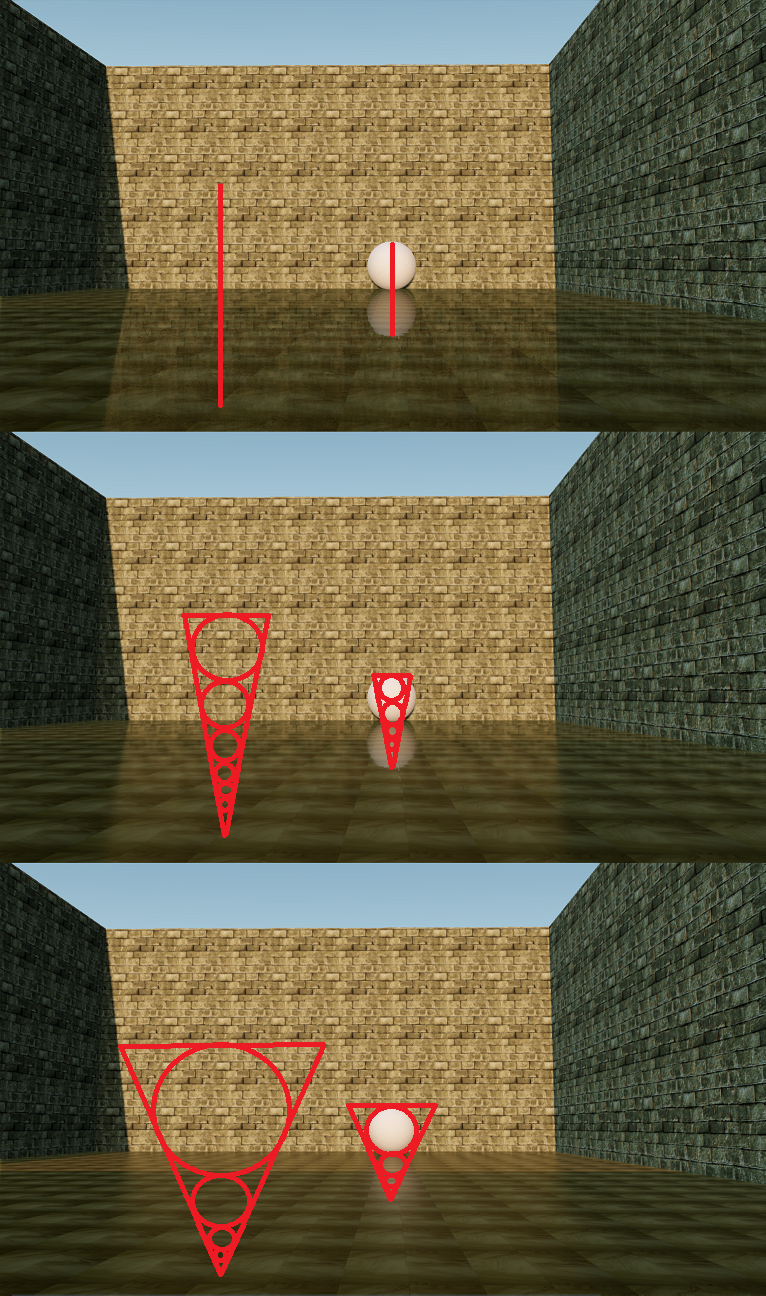 Due to the numerous issues mentioned towards the start of the post, rays facing back towards the viewer are disallowed entirely. This is an implementation choice and by no means a requirement. Implementers should experiment with their own scenes and determine whether backwards-traversing rays provide acceptable results for use cases specific to the application. In the implementation above, ray results start to fade as they become perpendicular such as to not cause a sharp cutoff at any one point.