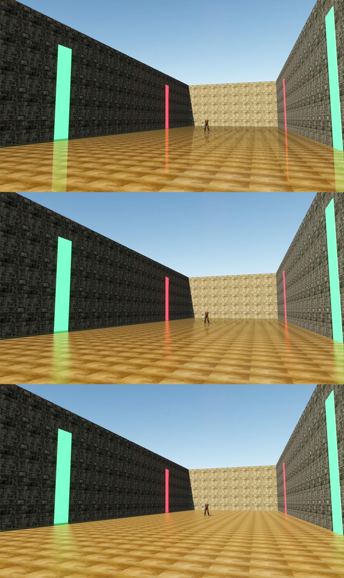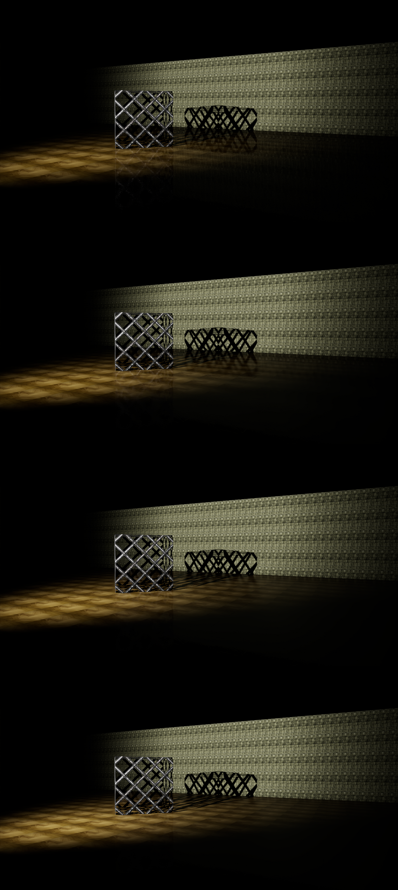 The fourth image again uses a steeper lighting contrast to help demonstrate how the effect applies as the floor material changes from very smooth to very rough.