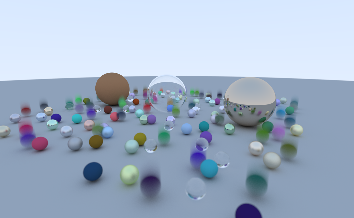 Of course, there’s nothing stopping you from implementing a more flexible Hittable type, similar to how materials are handled, and having a type identifier decipher which intersection function should be used. For the purposes of this exercise, I found the above approach to be plenty.